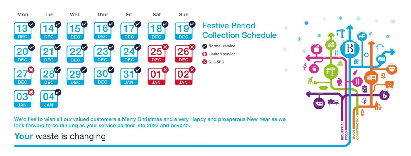 Please see the table below indicating our Festive Period Collection Schedule. Please click here to download a copy. Binn Group hopes to once again successfully work closely with you this year as we have in the past, to assist with ensuring waste is kept as clear as practicably possible during the Festive period. We would […]